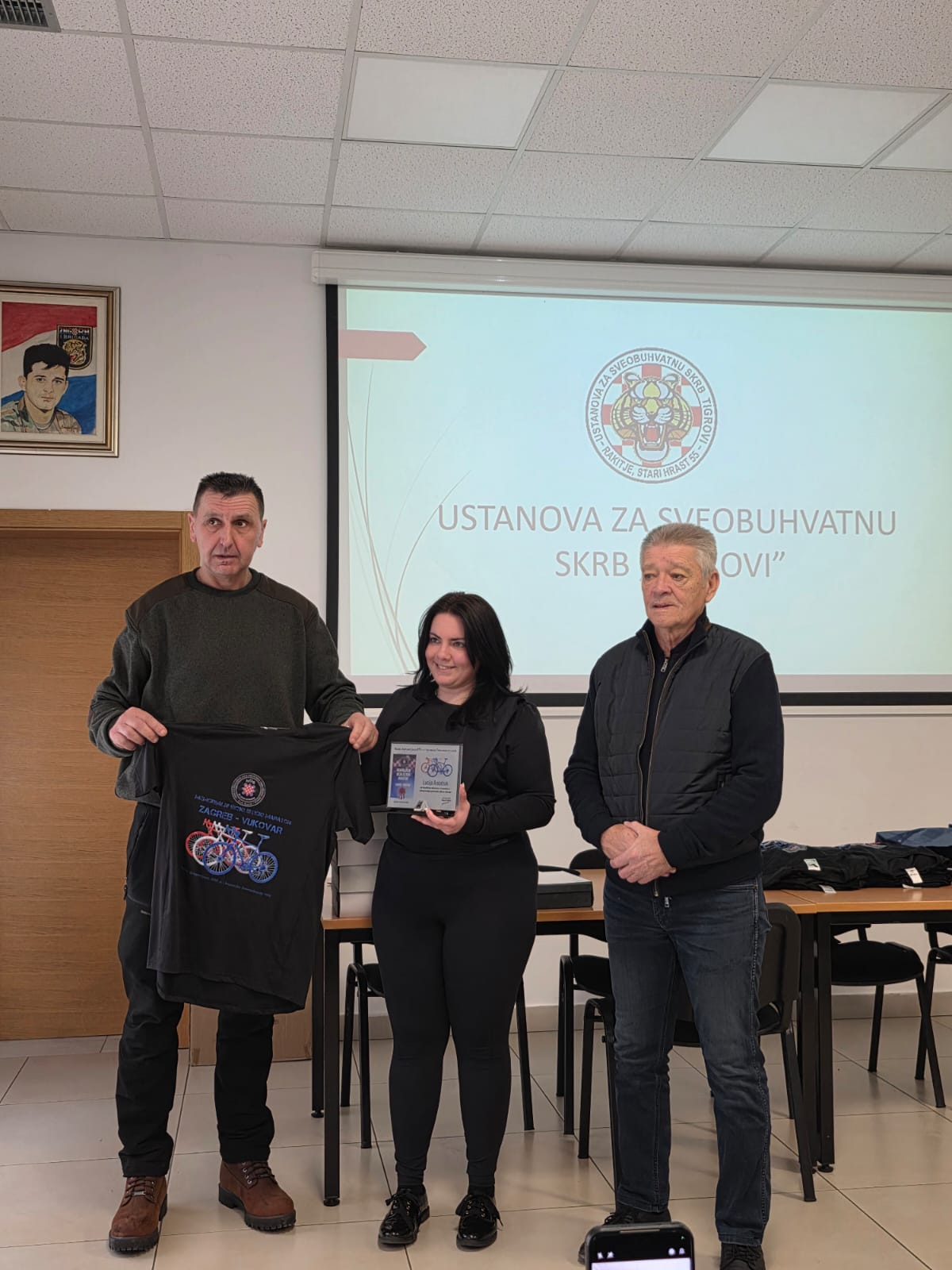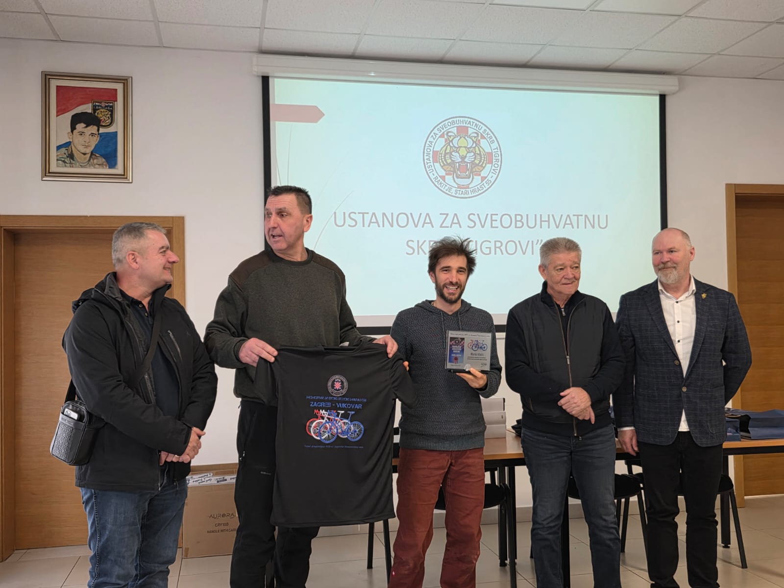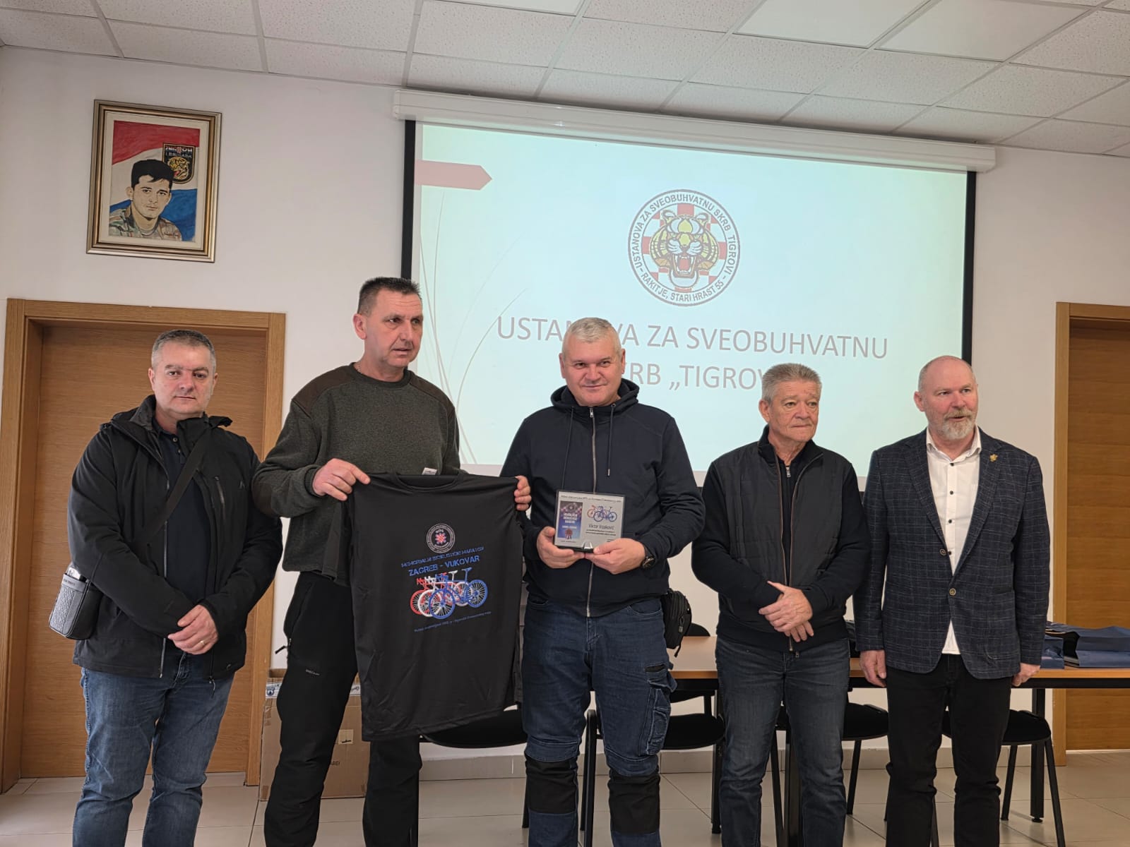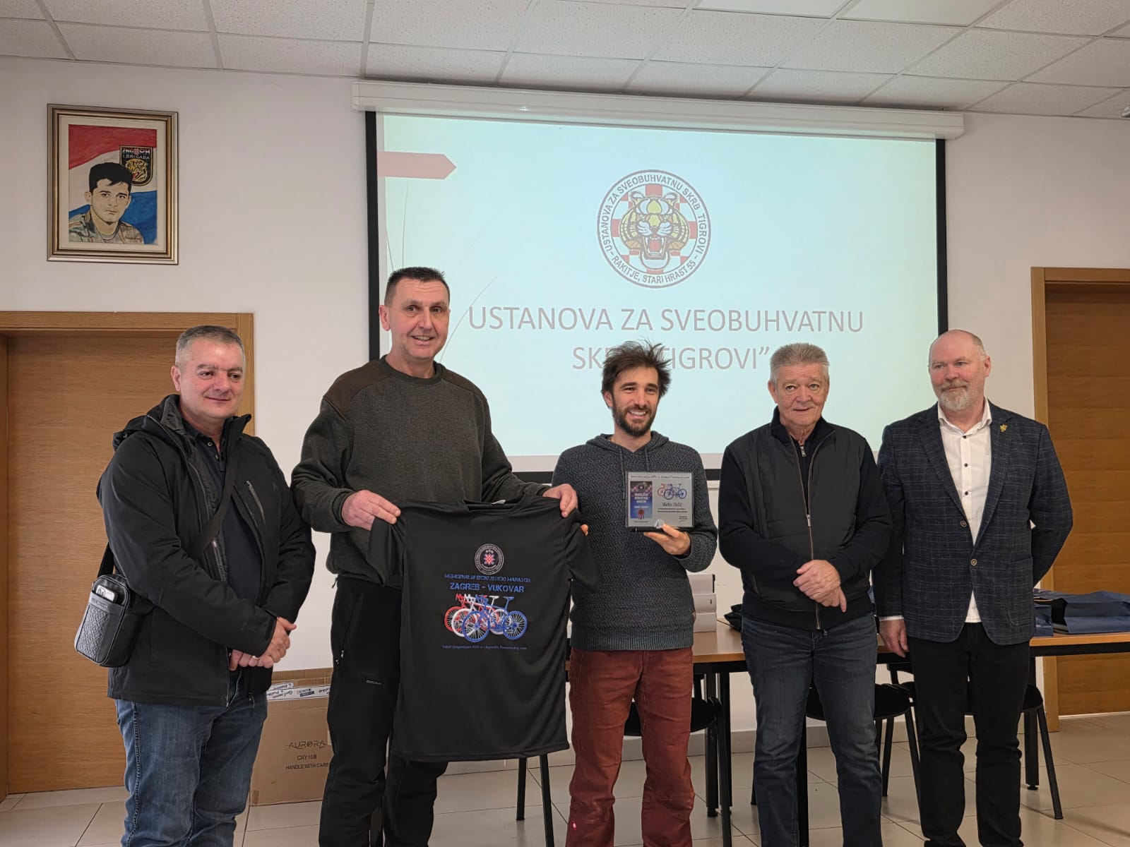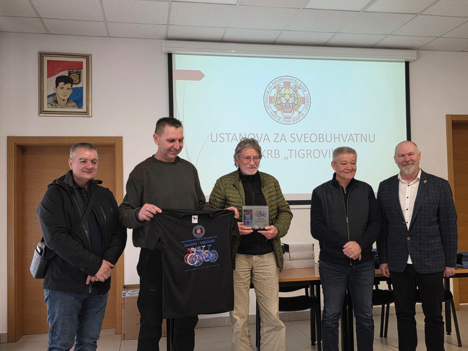 Ivan Friščić, predsjednik UDHOS ZAGREB zahvalio se na pozivu te je u prigodi 5.memorijalnog biciklističkog maratona Zagreb – Vukovara, „ Putevi dragovoljaca HOS-a i bojovnika Domovinskog rata“ uručio staklene plakete i prigodne majice sudionicima biciklističkog maratona.